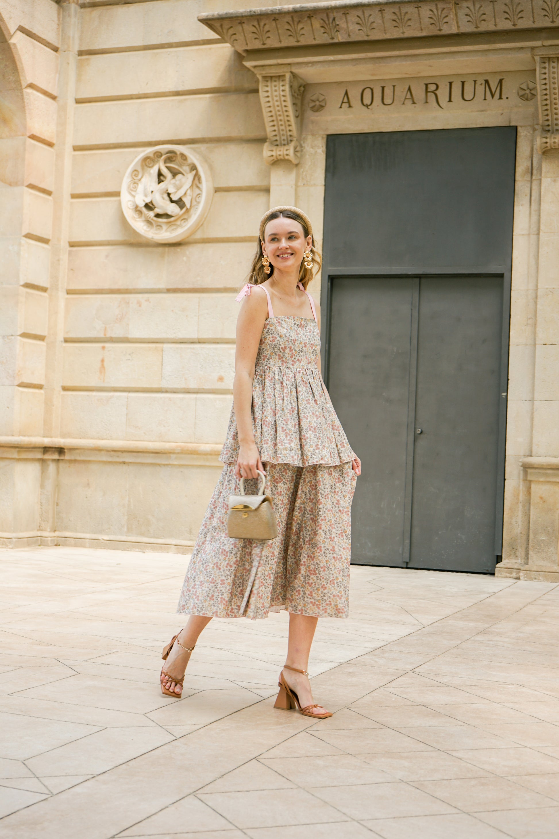 El vestido midi con tirantes y estampado floral está confeccionado en popelín, ofreciendo un diseño delicado y femenino.